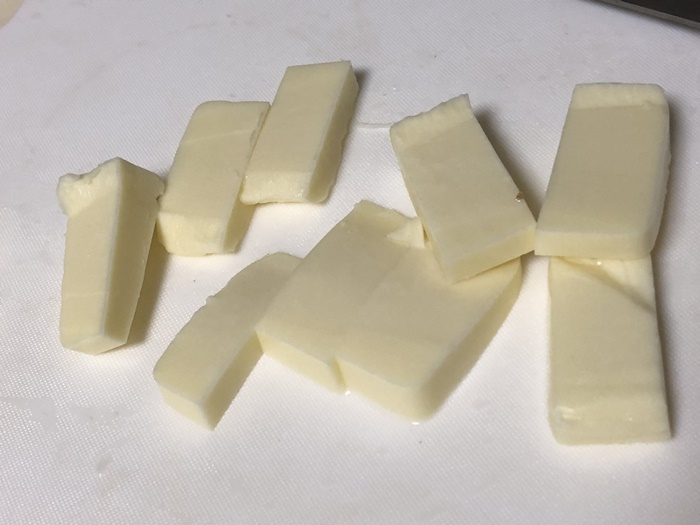 まずはチーズを一口大に切って