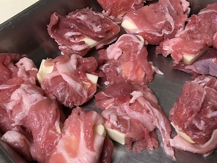 豚小間でチーズを包みます。