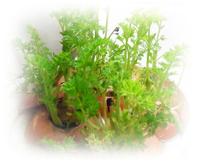 右のは大根やニンジンのヘタからこんな風に緑の葉っぱが出てたの。