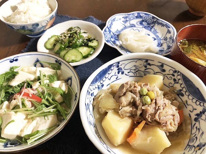 昨日はおでんの残り汁で肉じゃが。