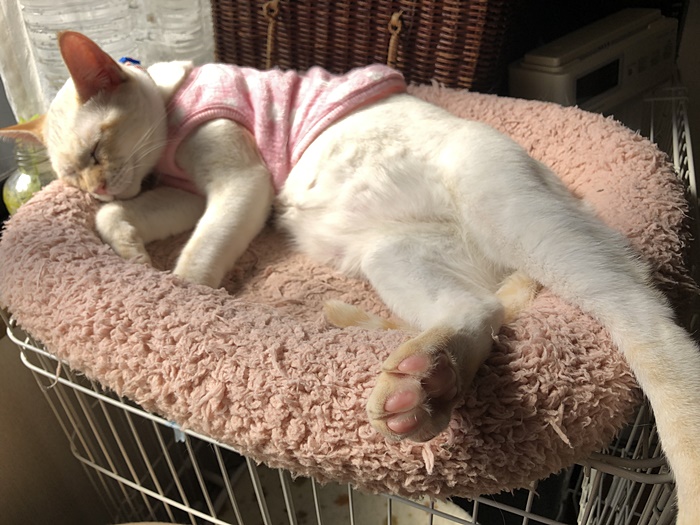 所が夜になって寝てばかりでフードもあまり食べない。