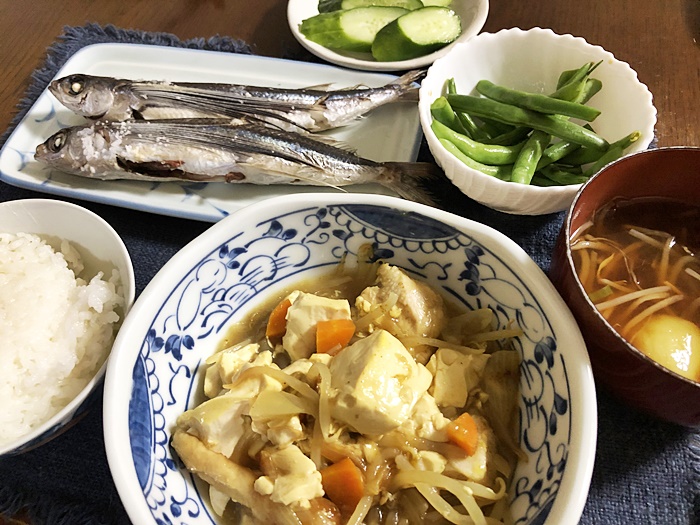 豆腐、ムネ肉、モヤシと節約3種の神器で1品。