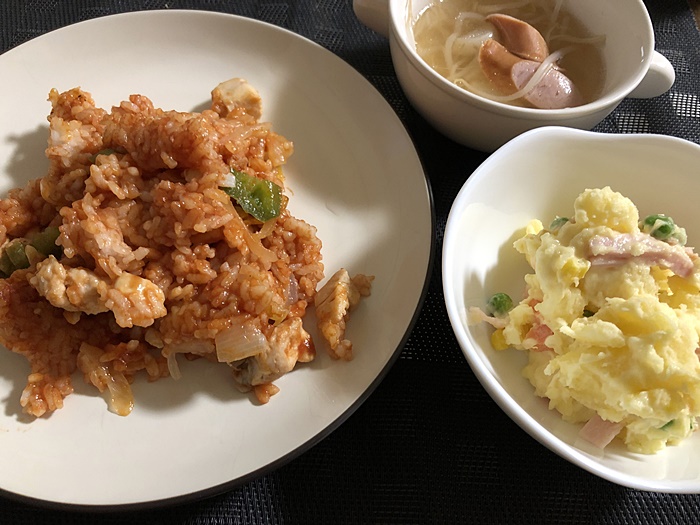 ぼんじょるのさんもポテサラとチキンライスお好きとは