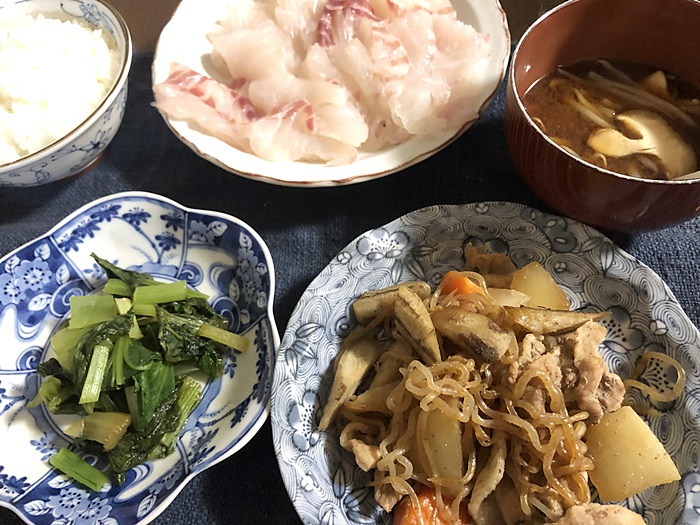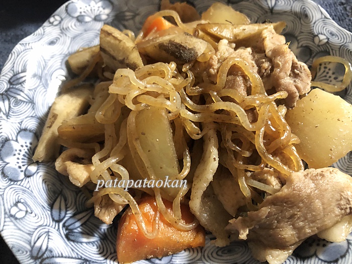 昨日は特売豚肉とゴボウで炒め煮。