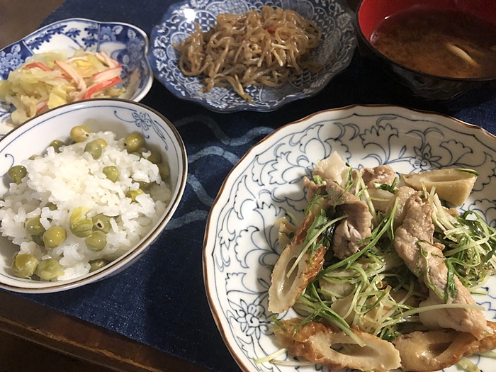 後はみそ汁もつけて4品、一人分200円程の夕食。