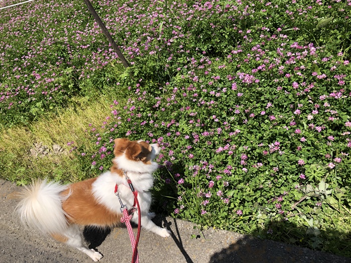 お散歩にの途中ですが蓮華があまりに見事だったので