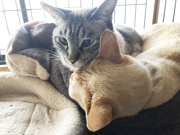 寒いからかべったりくっつくロアと紫音💗