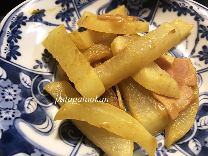 ・大根とベーコンにカレー炒め