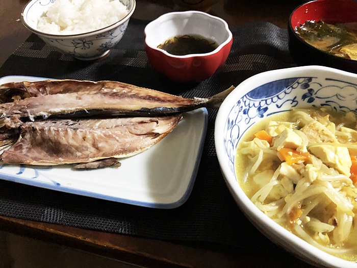 昨日は特売のアジ開きがあったのでこれがメイン。