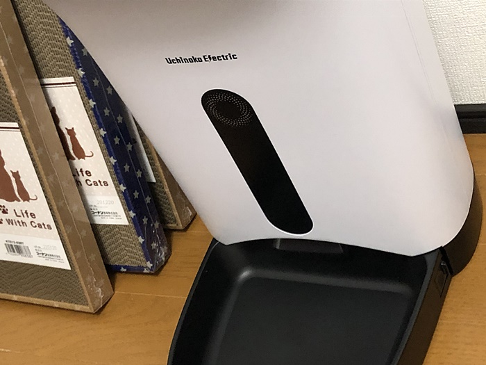 長時間のお留守番でもOKなように自動給餌機。