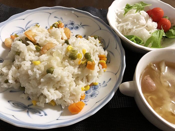 えびピラフと大根サラダ、とても美味しそうですね。