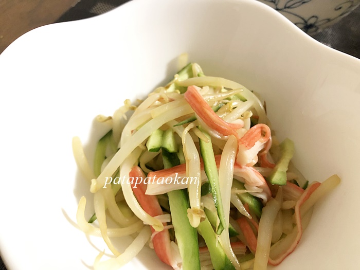 サラダはもやしとカニカマで。