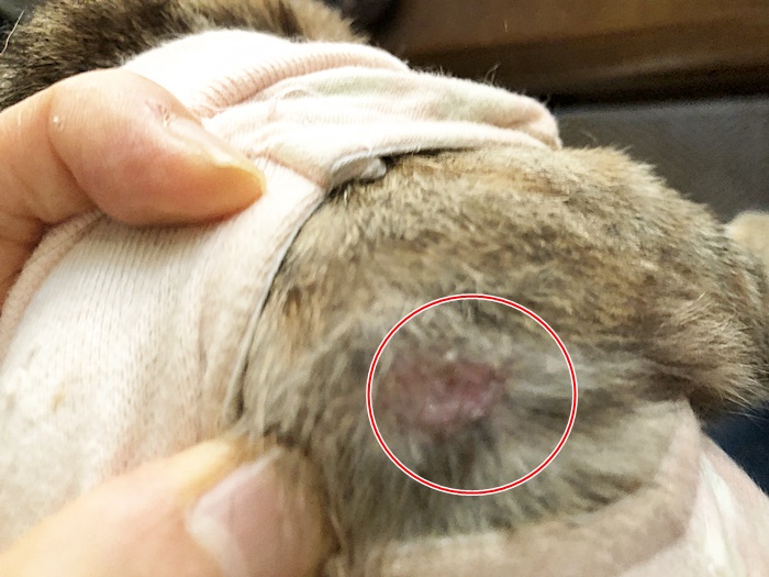 小さな傷だったのに舐めて大きくなってる~(´;ω;`)ウゥゥ