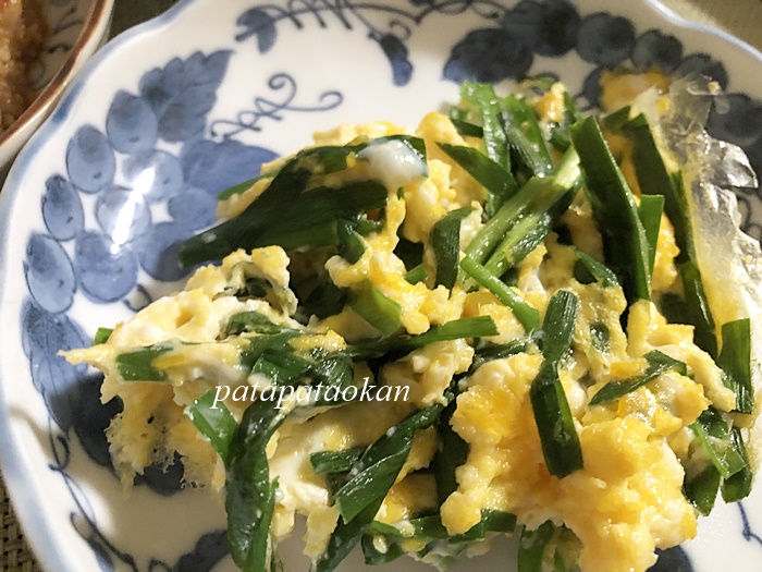 野菜おかずは昨日割ってしまった卵消費でニラ卵。