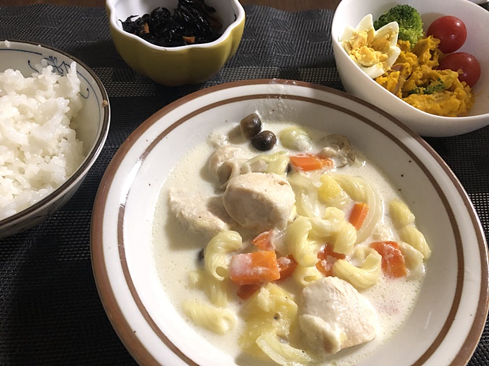 昨日は特売胸肉で酒かす入りクリーム煮。