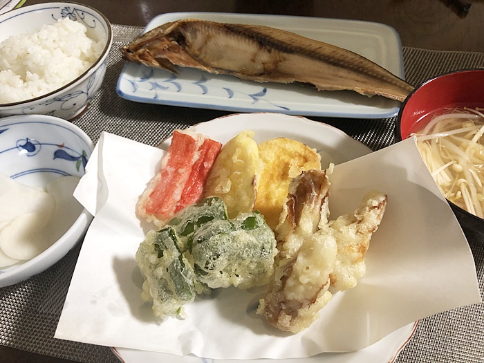 サブのおかずは冷蔵庫にあったもので天ぷら。