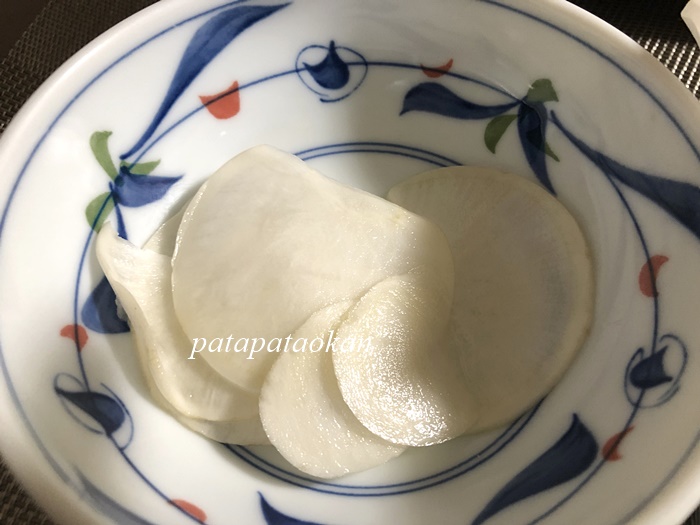 野菜おかずはカブの千枚漬け。