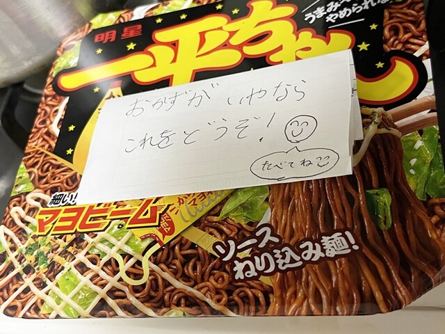 残されても頭にくるので予めカップ焼きそばを購入。