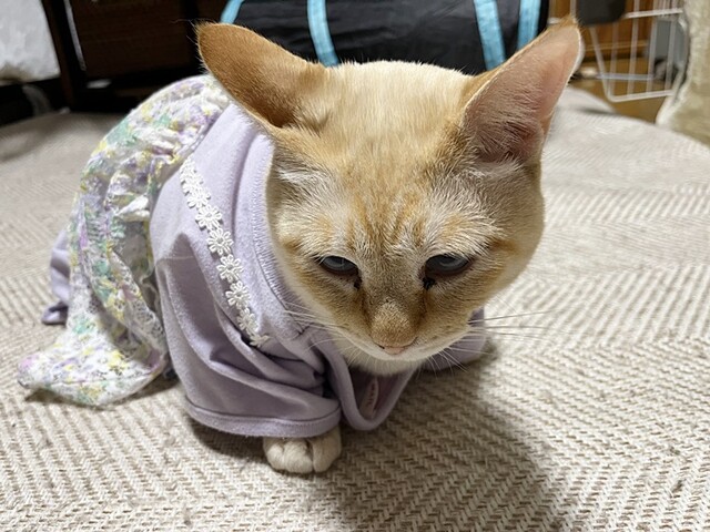 nanaちゃんの服を着せられたロア。
