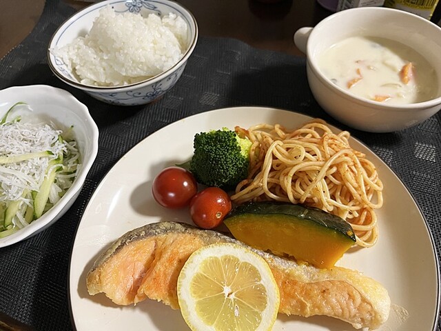 昨日は値引きの鮭でムニエル。