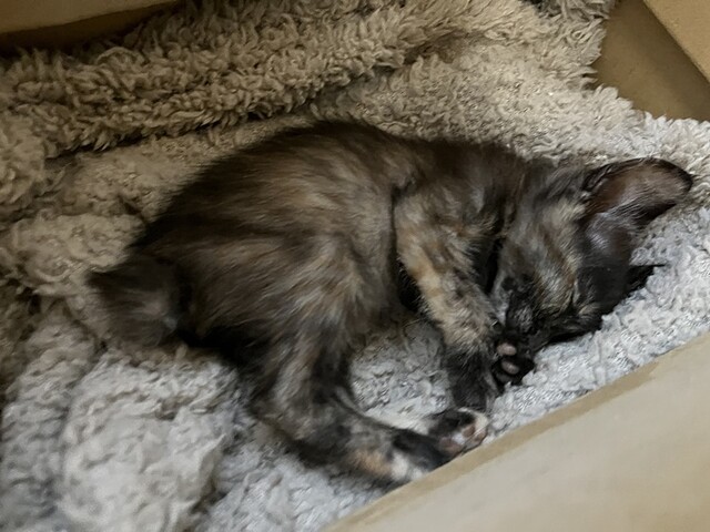 さて、今朝からサビ仔猫マイアちゃんの呼吸が少し早い!