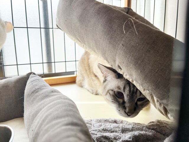 エリちゃん、いつもは元気なのに初譲渡会でブルブル震えてたので