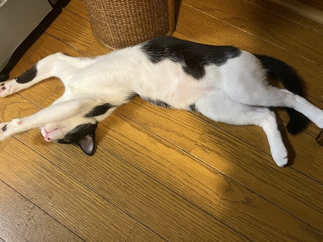 私の足元で大の字になって寝てました~(笑)