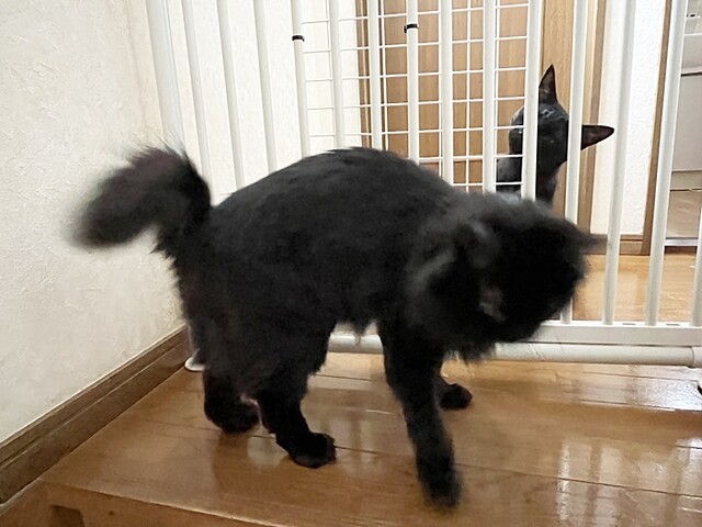 朝、出勤前にいつものようにニャンズ達をケージへ入れていたら