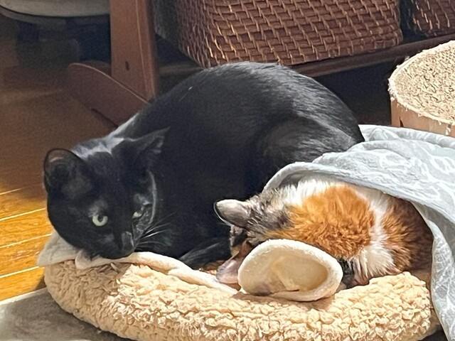 クロム君は ホントに美風ちゃんの忠実なナイトですね💛そう言えば 我が家 黒ニャンは未経験。サビ子は最初黒猫かと思いきや どんどんサビになっていきました。