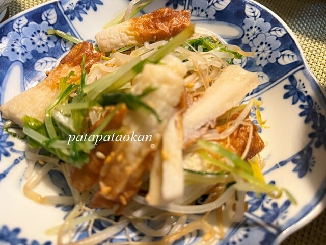 ・水菜とモヤシ、チクワンの胡麻和え