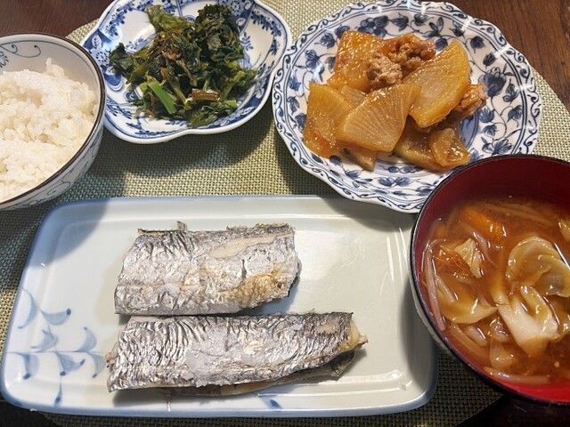 サブのおかずは頂き物の大根と特売豚肉ミンチにして