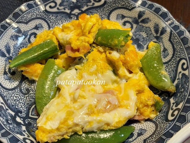 ・スナップエンドウとベーコンの卵とじ