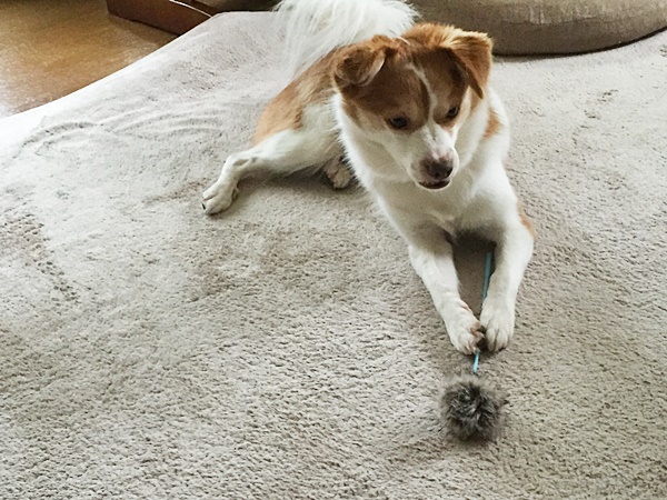 マロンのおもちゃを横取りするクゥ。