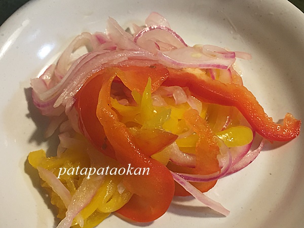 半端に残っていたパプリカと紫玉ねぎでマリネ。